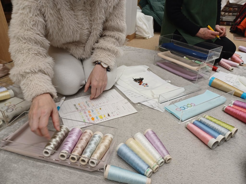 工房で、実際の刺繍糸を選びました。大量の刺繍糸から1色を選ぶのは難しく、集中した2時間でした。