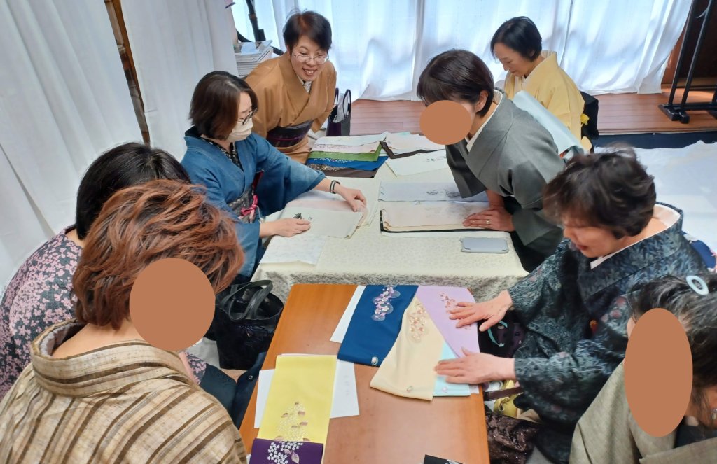 2025年の半襟つくろう会では、半年間ほど月1回のミーティングを行い、製作を進めました。